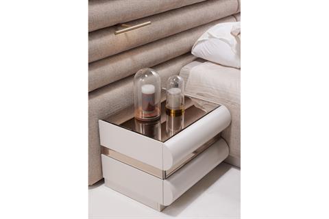Karyola; Suntalam malzeme üzerine kumaş döşenerek üretilmiştir. 160×200 cm yatak ölçüsüne uygundur. Başlıkta silinebilir kumaş kullanılmıştır.