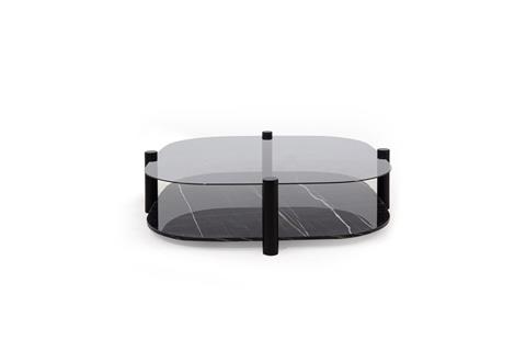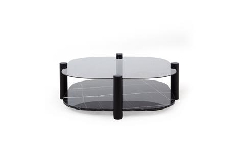 Ek Bilgiler Alt tabla, mermer görünümlü dayanıklı sonata mdf lak panelden; üst tabla ise temperli füme camdan üretilmiştir